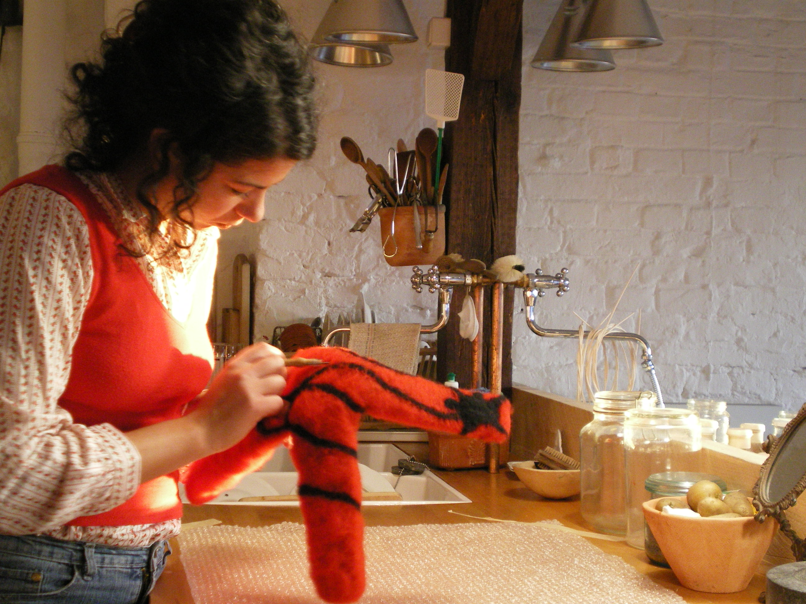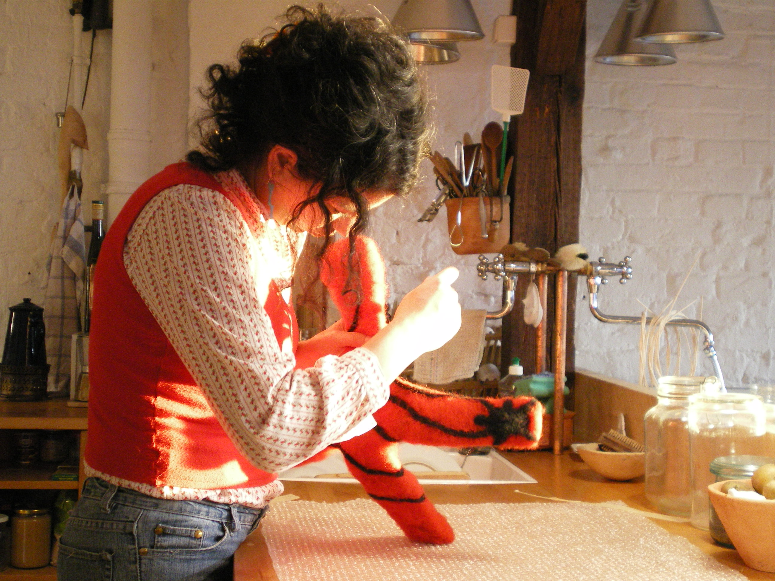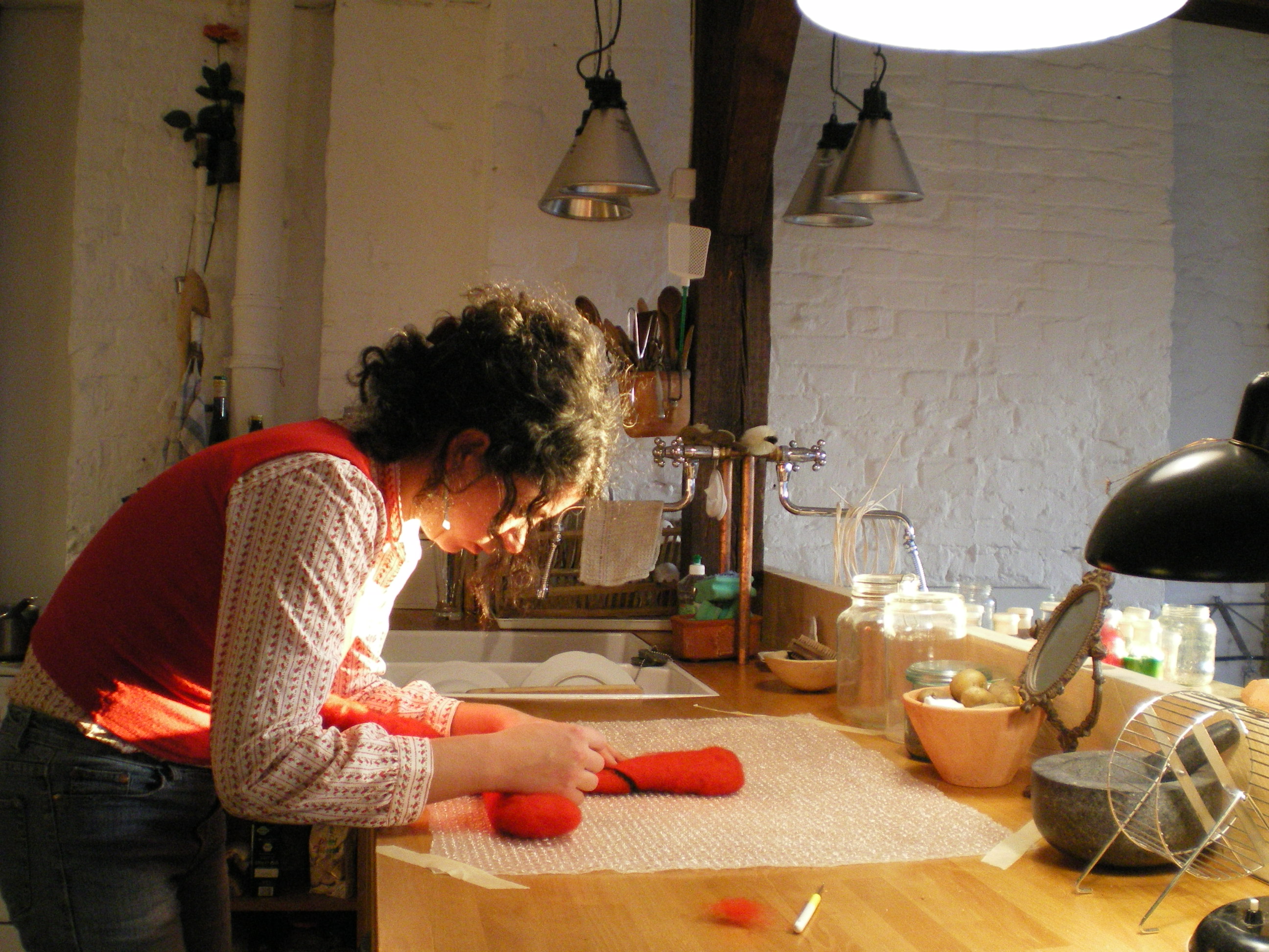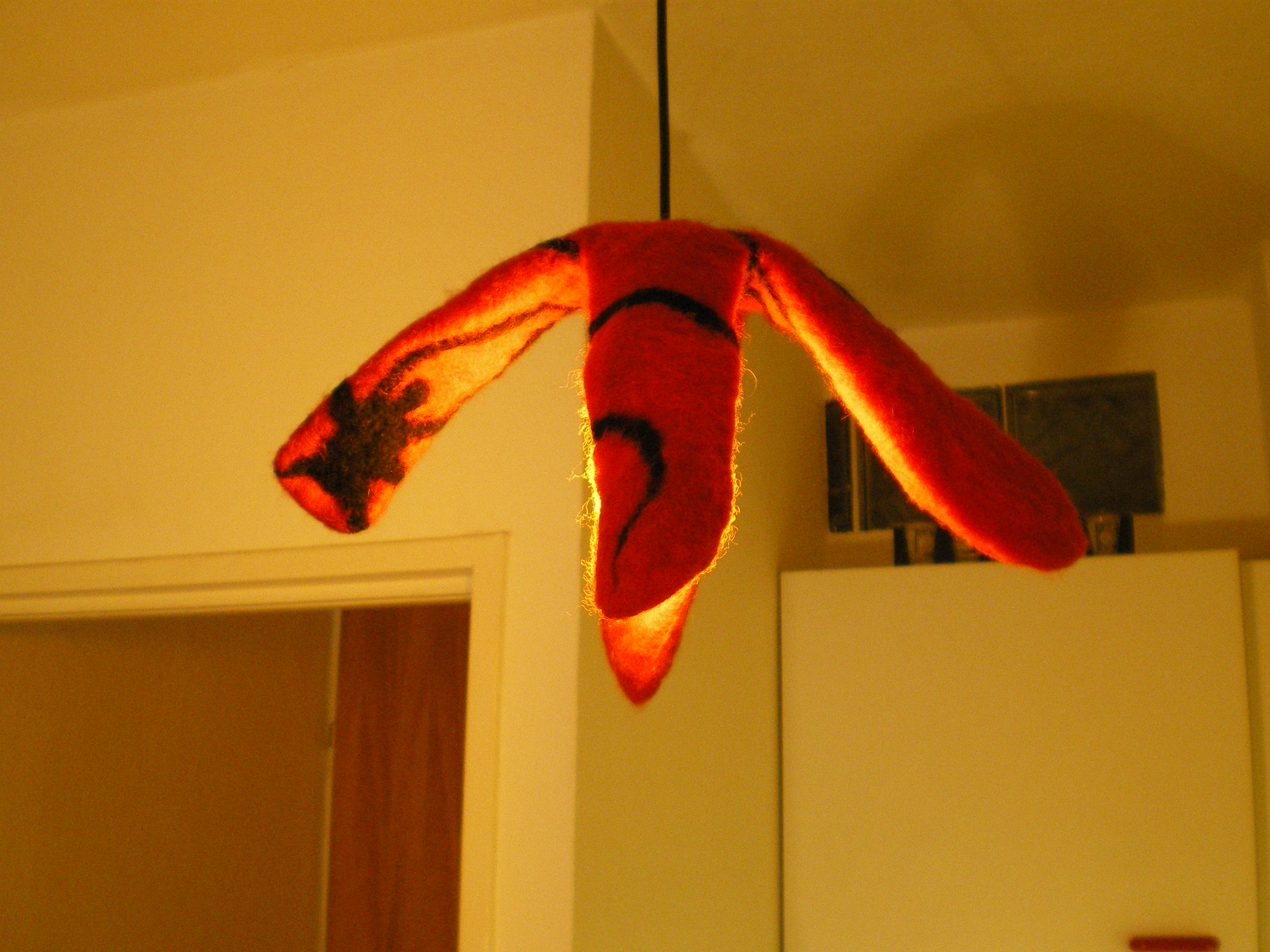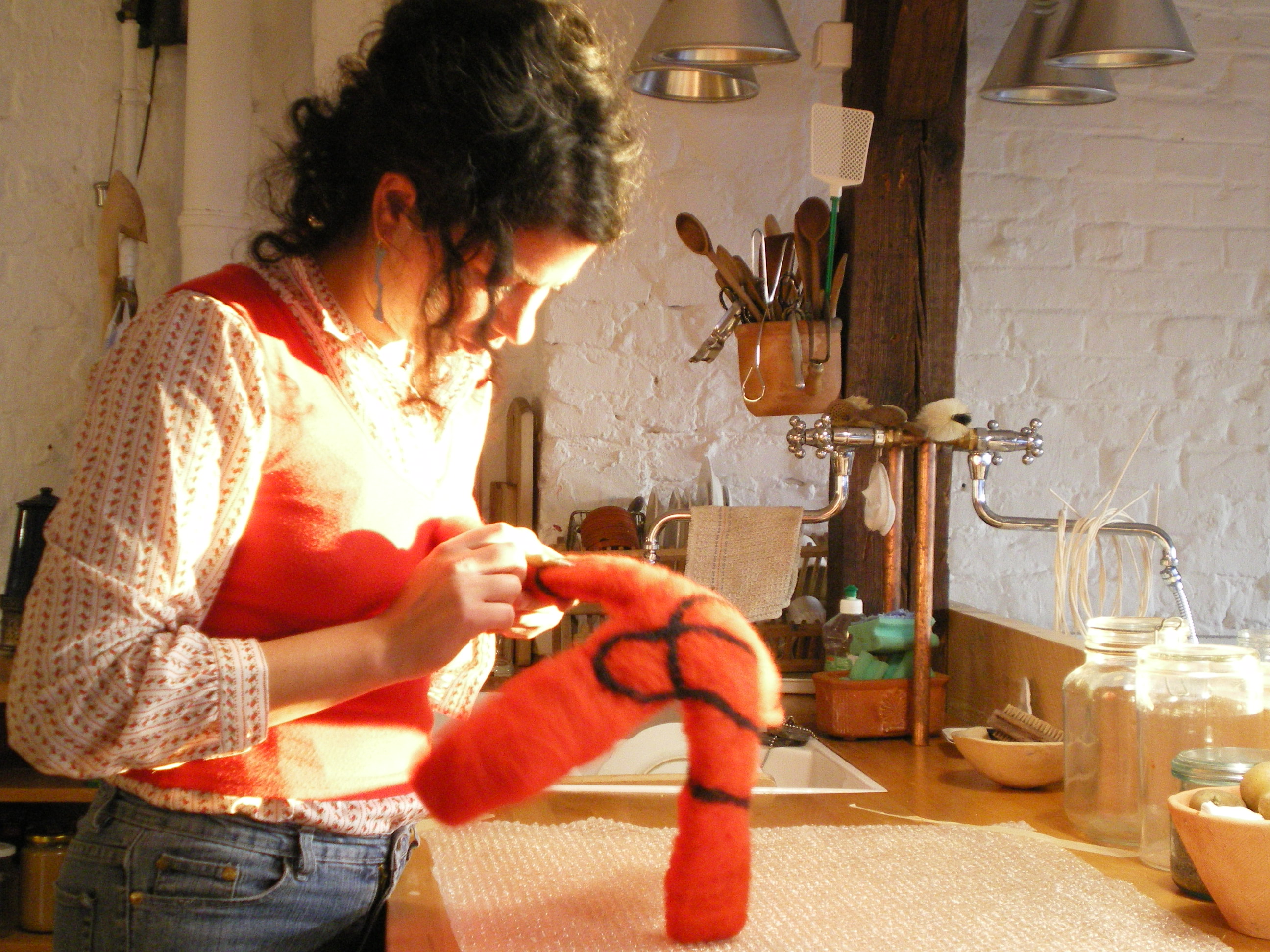 5 thoughts on “during the process: felted lamp -spiders in my kitchen-