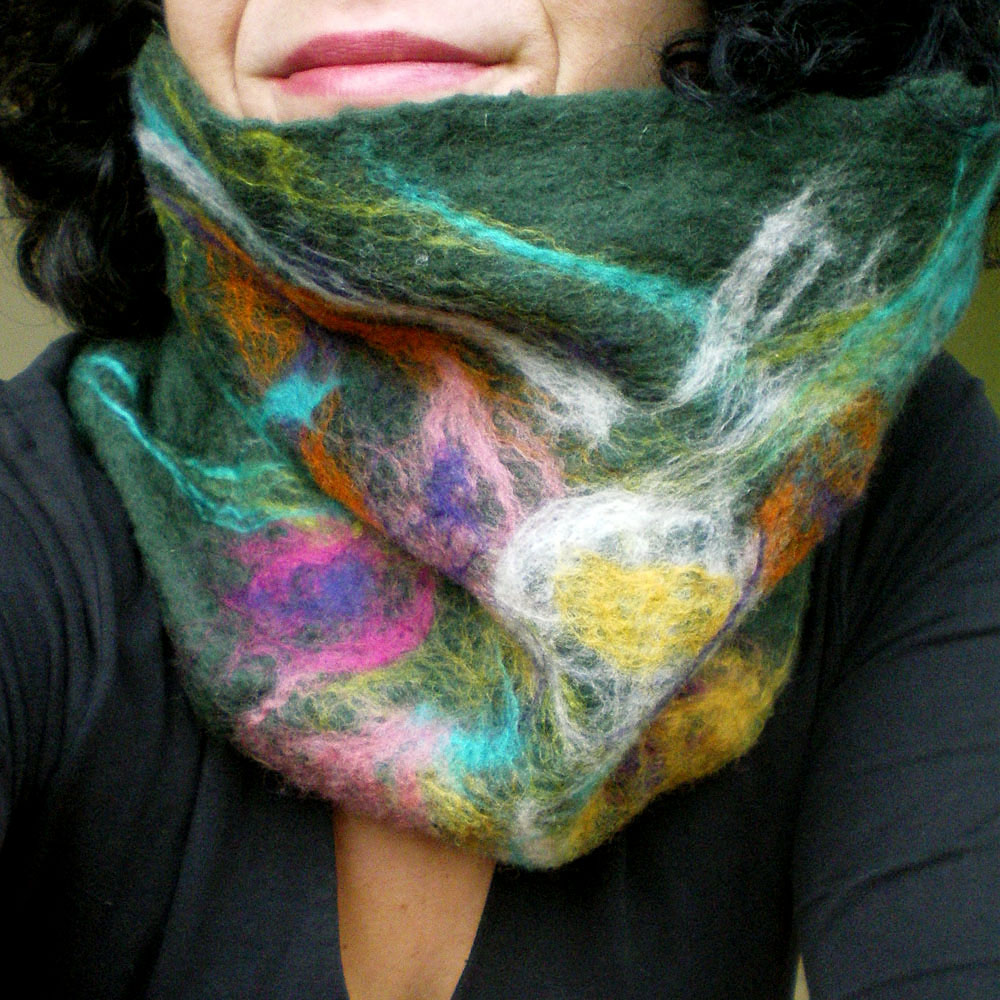 2 thoughts on “felted neck warmer -Saw you flying by-