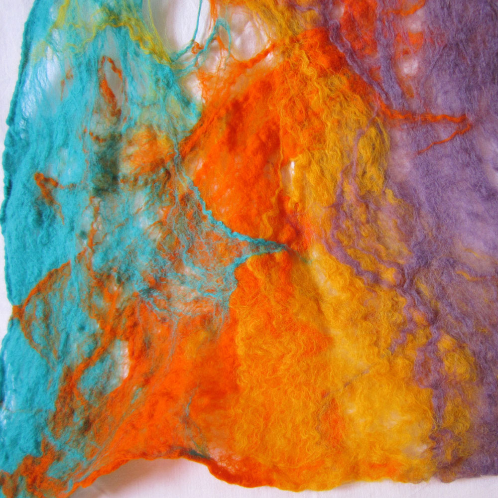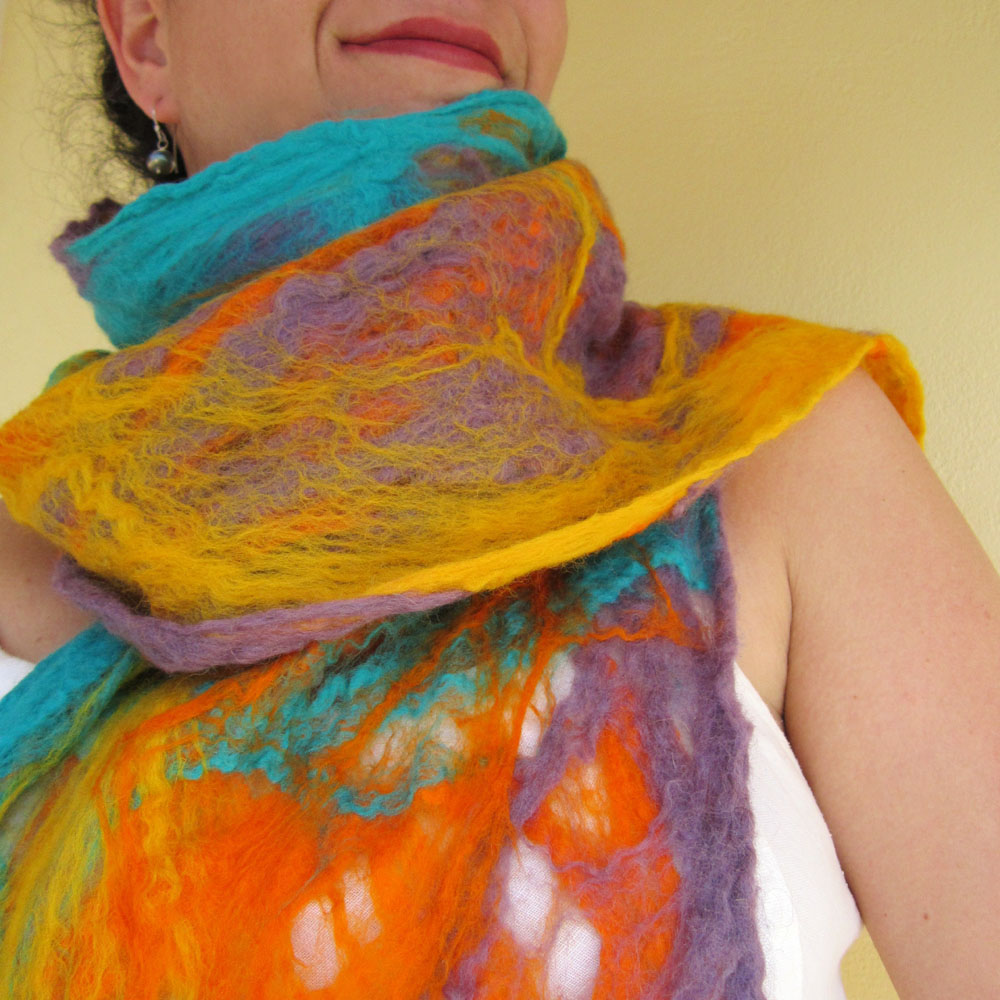 4 thoughts on “cobweb felted scarf -summer in the light-