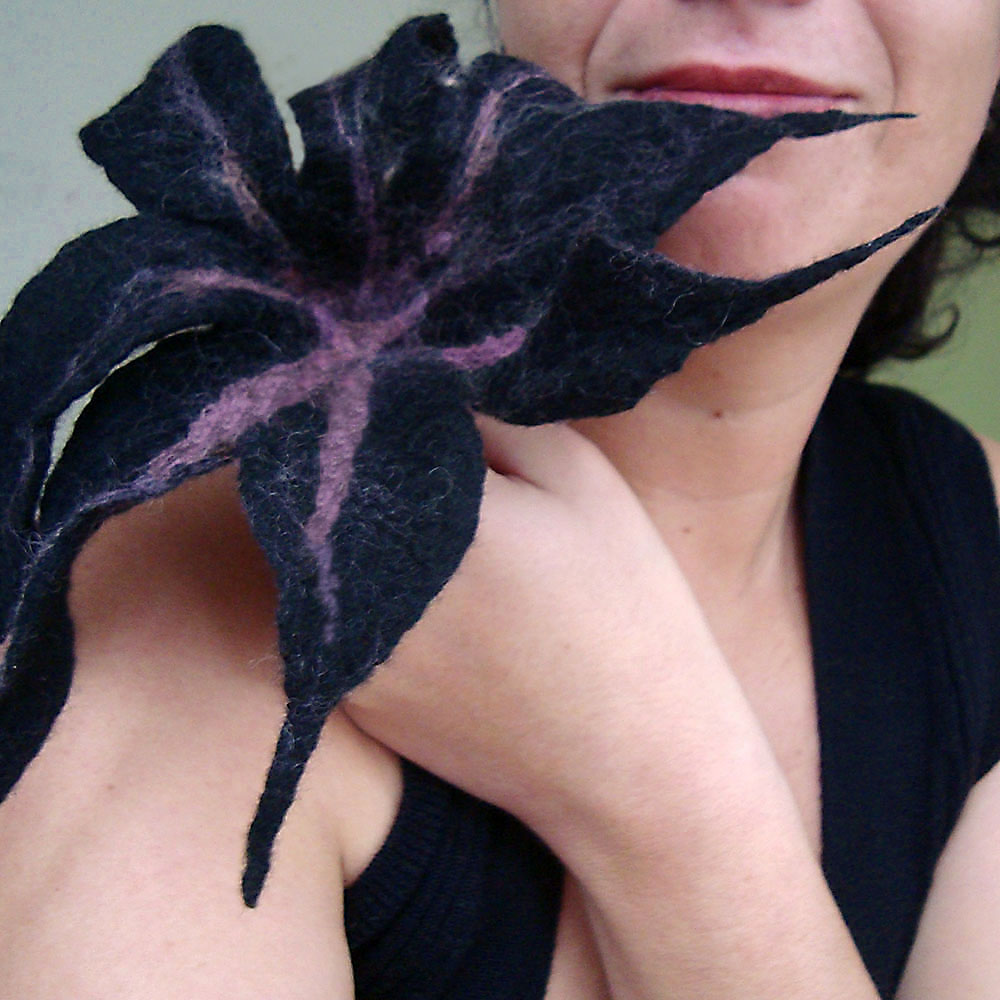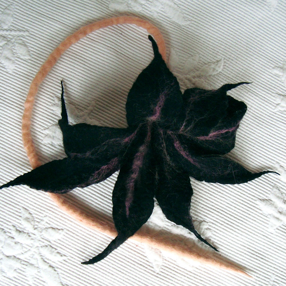 This -black black heart- flower is hand-felted from extra-fine merino wool from Australia in black, salmon and pink colors.