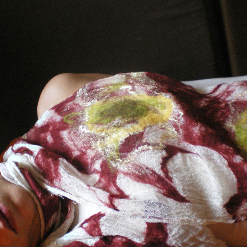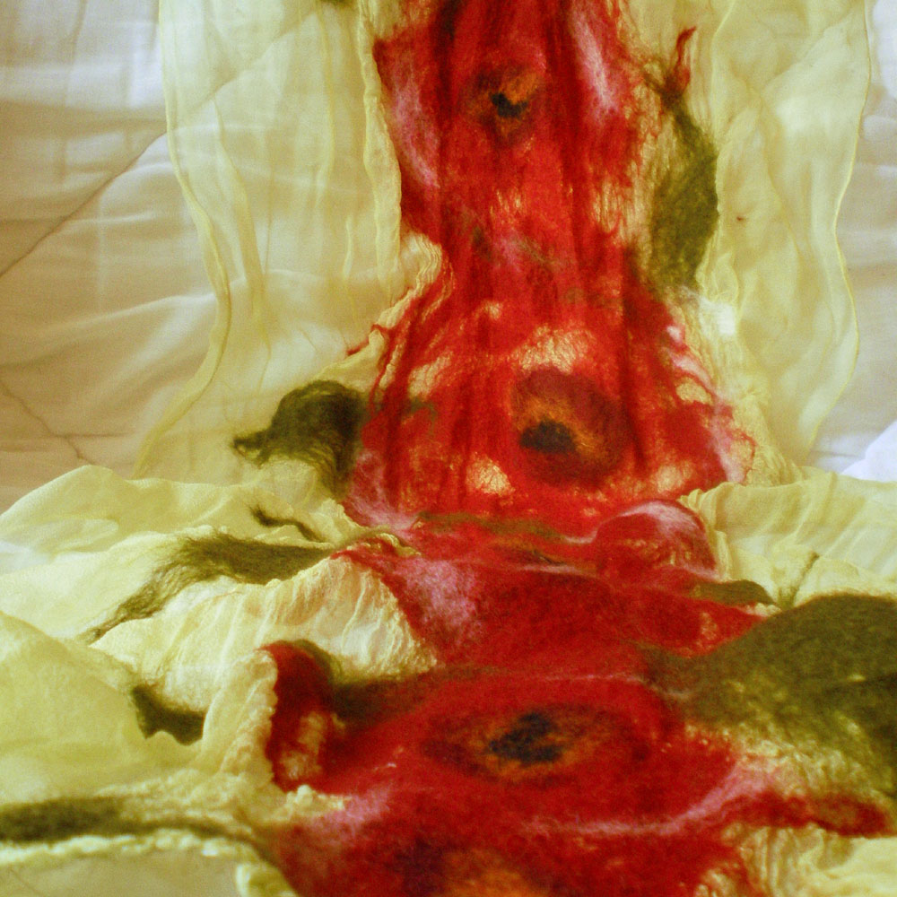 nuno felted scarf -painting and kissing-