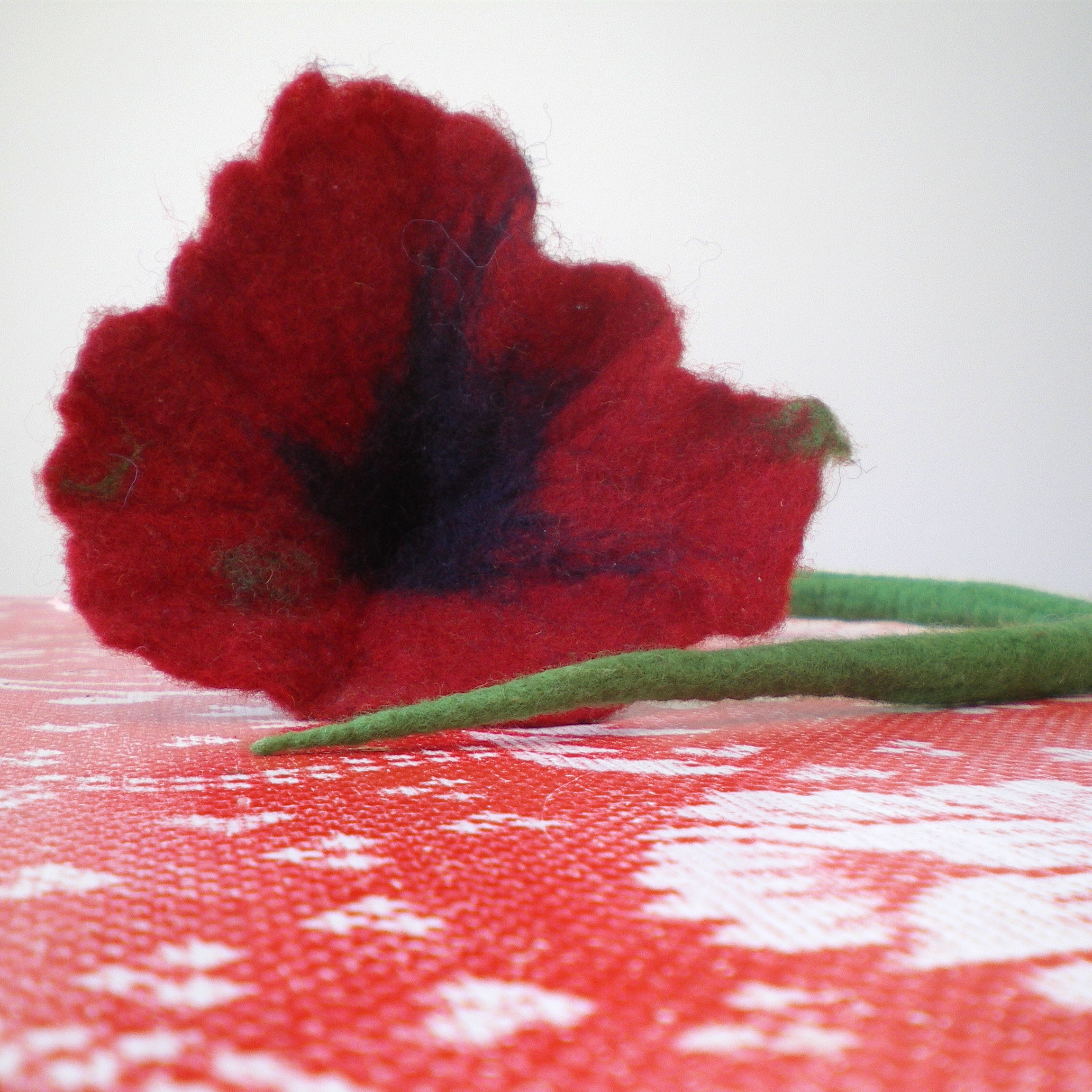 felted flower hair decoration -the sad witch-  felted flower hair decoration -the sad witch-This lovely red flower is felted with merino wool from New Zealand in red, dark blue and green colour. The flower measures approximately 13 cm (5.1 in) diameter and its stalk 45 cm (17.7 in) length.