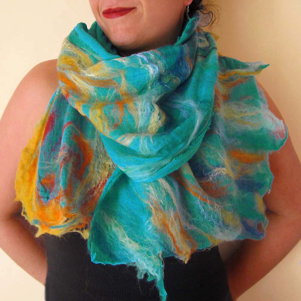nuno felted scarf: summer elements -aqua-