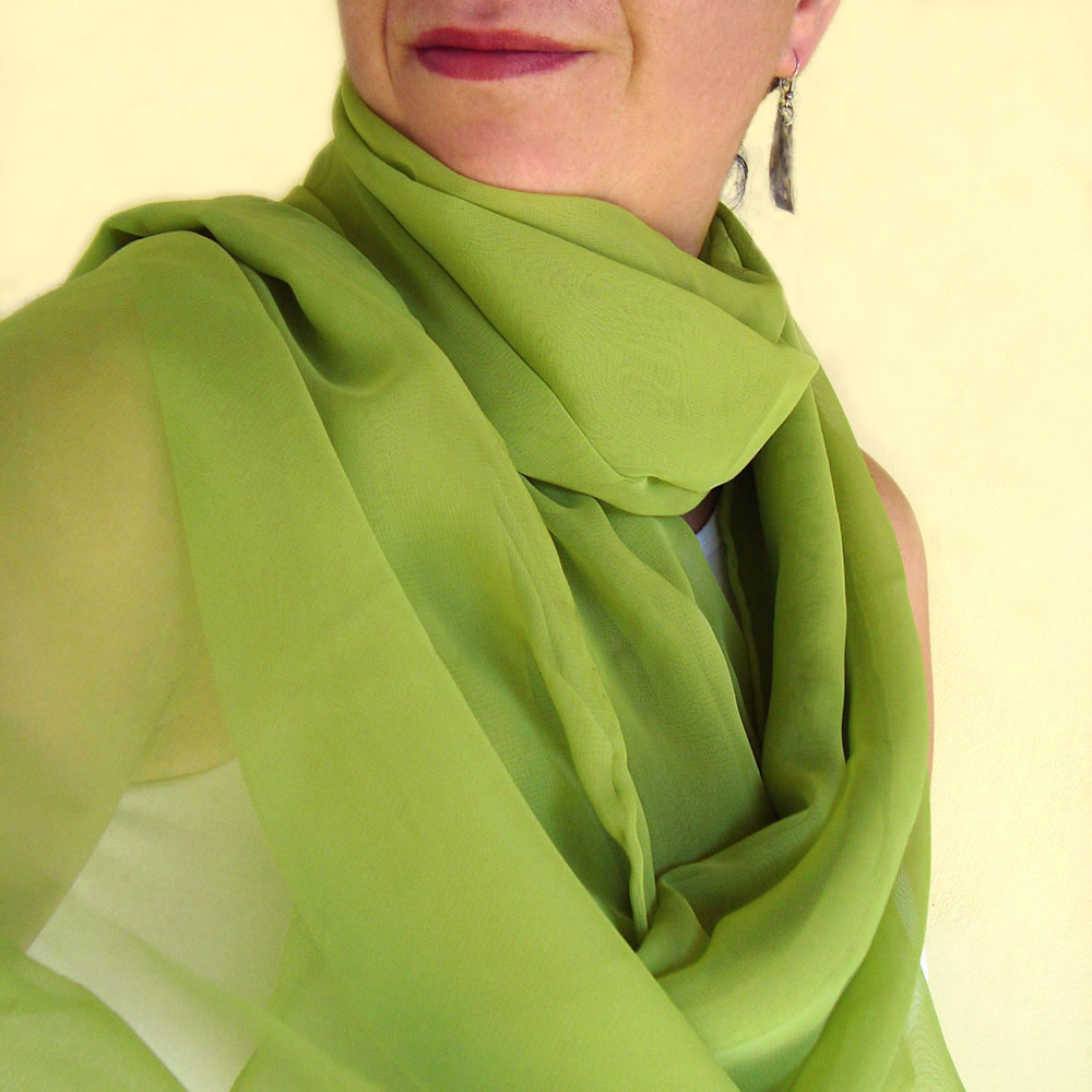 Vivid grass green in a ethereal chiffon scarf primed for you who search for an exceptional and eco-friendly gift for a unique occasion and for your beloved ones. Make your unique moments handmade!