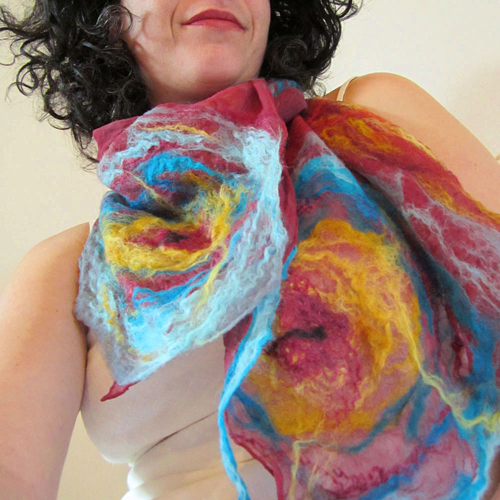 nuno felted scarf -summer wine- 150 USD (excl. shipping costs)
